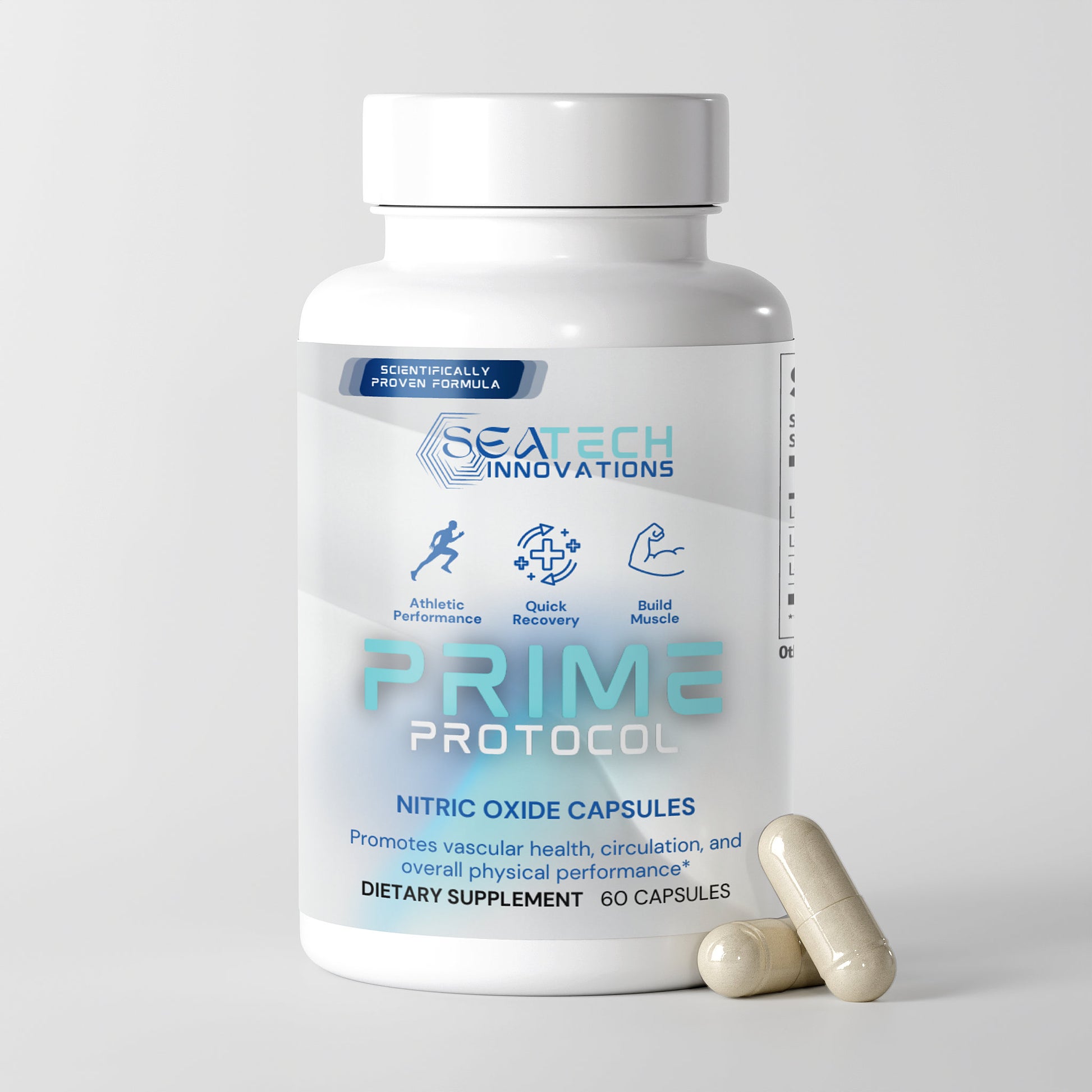 SeaTech's Prime Protocol Nitric Oxide is designed to support healthy circulation and muscle growth, making it a great addition to your fitness or wellness routine. The formula includes L-Arginine Alpha-Ketoglutarate, known for its ability to promote normal blood flow and nutrient delivery to muscles, contributing to exercise performance.*